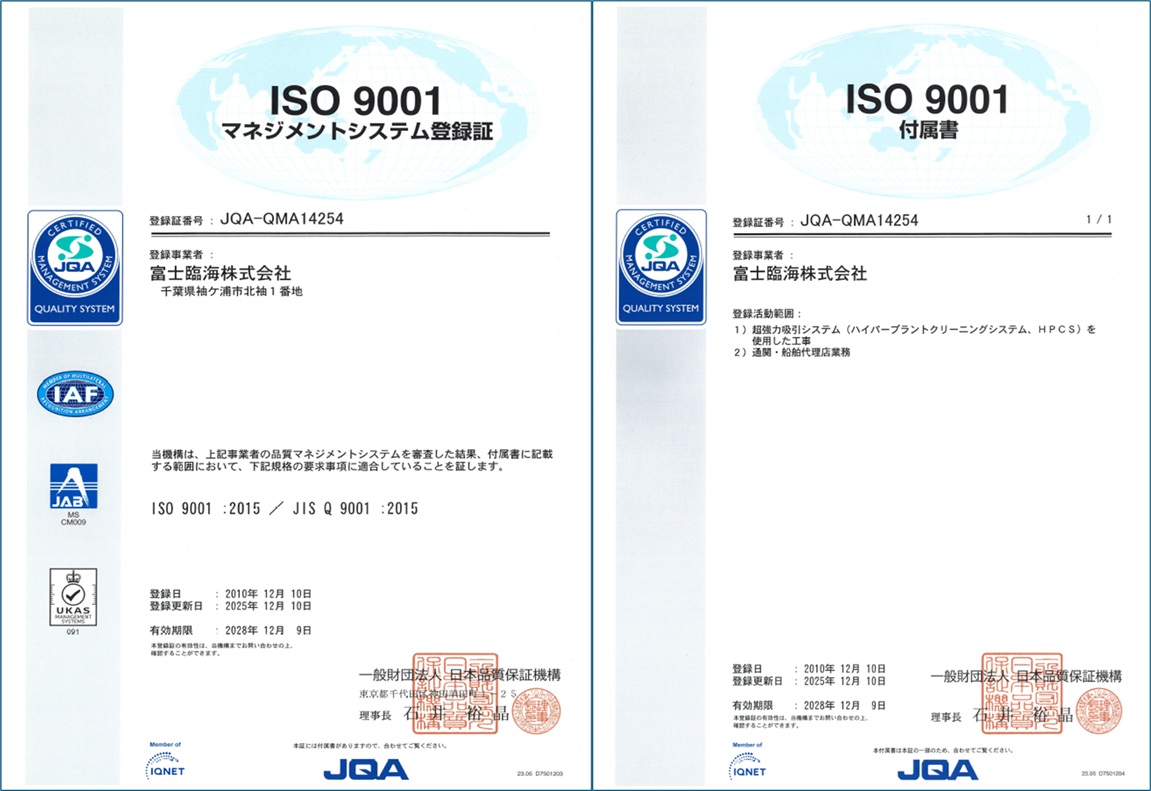 | 登録活動範囲 | 1.超強力吸引システム(ハイパープラントクリーニングシステム、 HPCS) を使用した工事 2.通関・船舶代理店業務 |